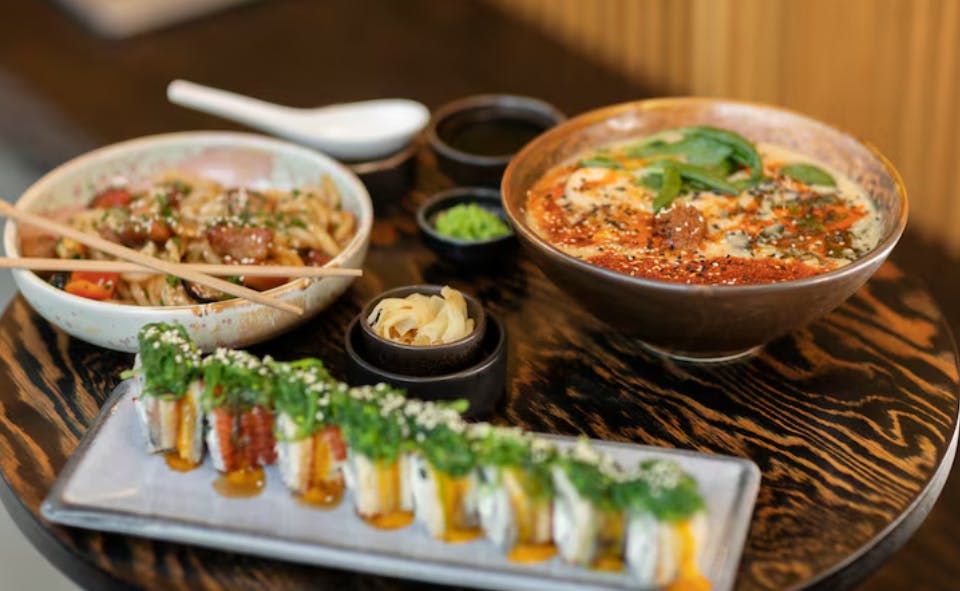 One bright small plate to open, one warm plate for comfort, and a roll with a clean finish. It is a simple shape that works most nights at a pan-asian restaurant tuned for balance.